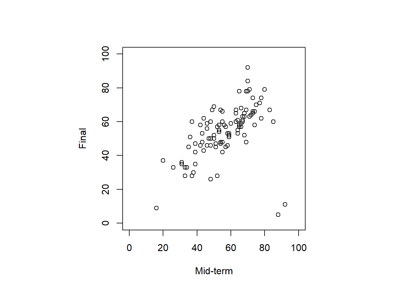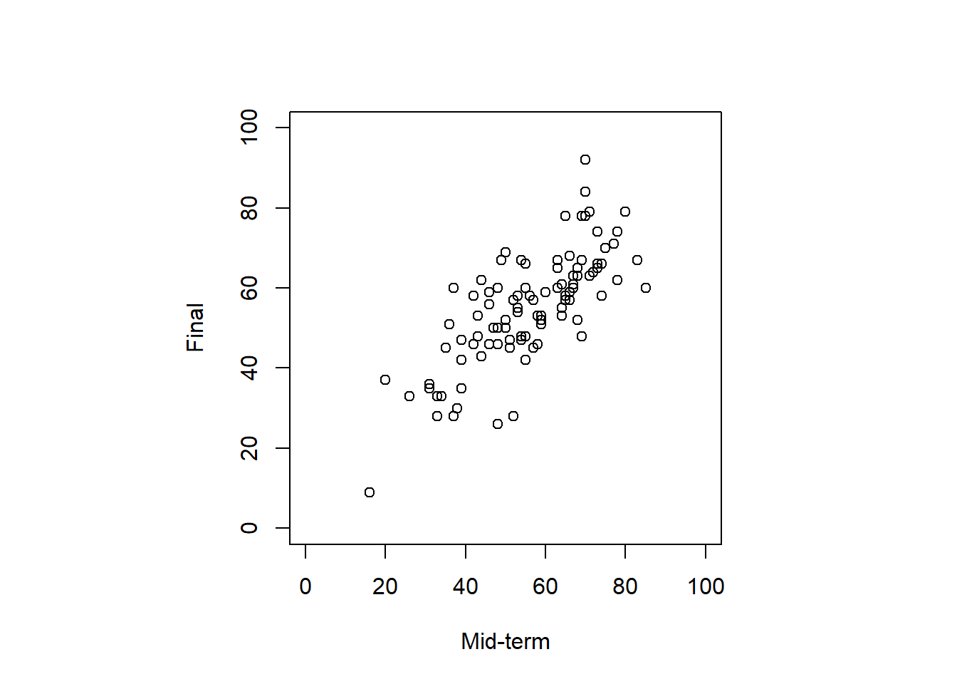 (因果関係を匂わせており不正確)中間試験の得点が1点高くなるほど、期末試験の得点は0.73点高くなる