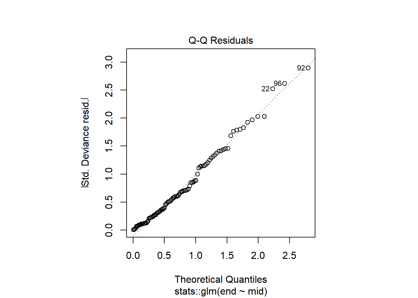 ## stats::glm(formula = end ~ mid, data = dat.3)