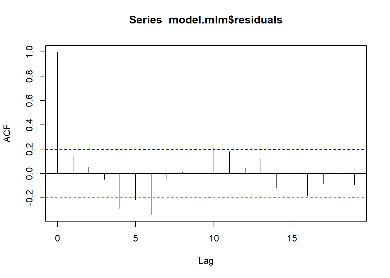 ## Autocorrelations of series 'model.mlm$residuals', by lag